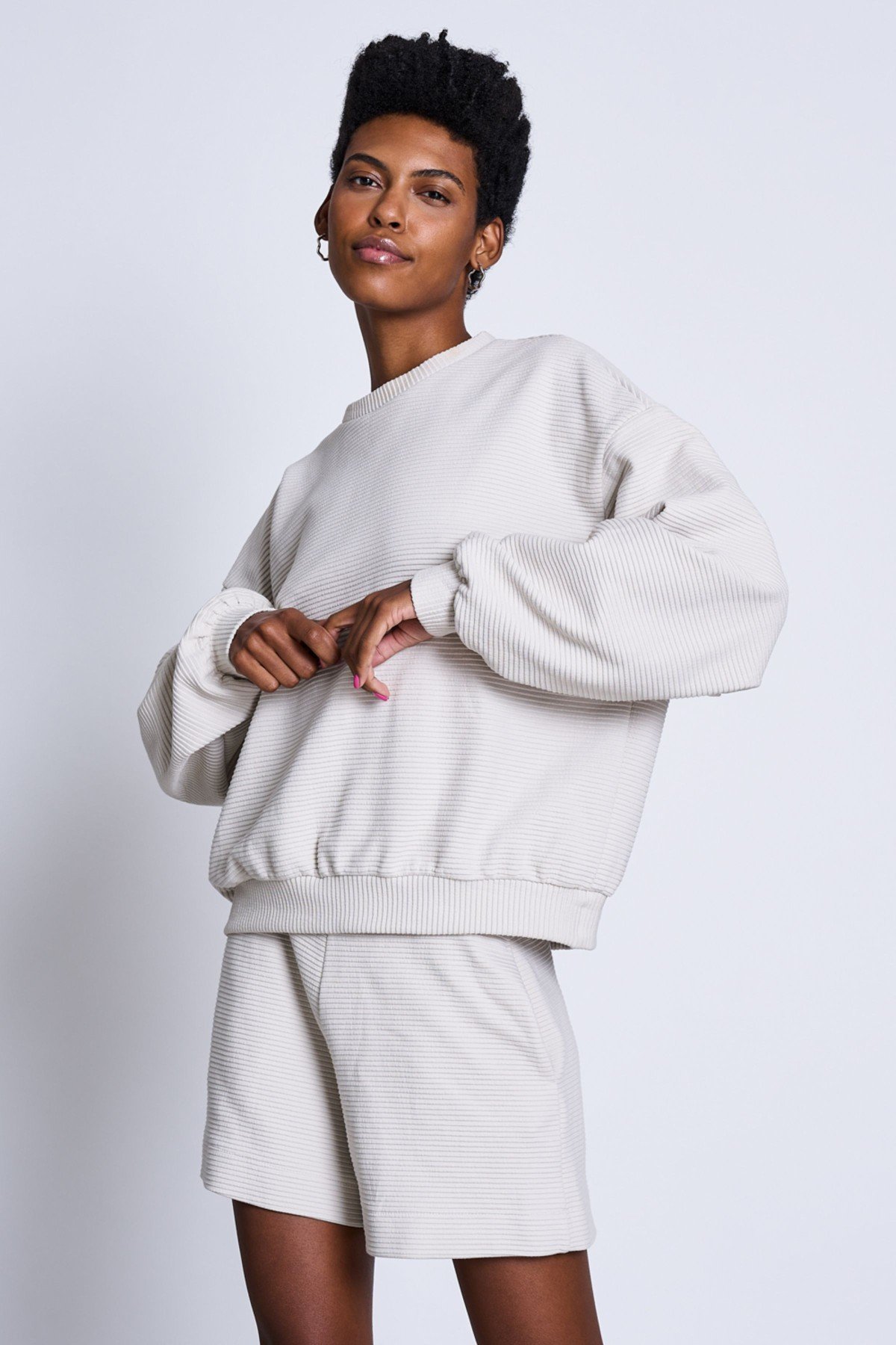 Verschlussart Kein Verschluss Optik Horizontale Streifen mit feiner BubbleStruktur Ärmel Langarm Ausschnitt Rundhalsausschnitt