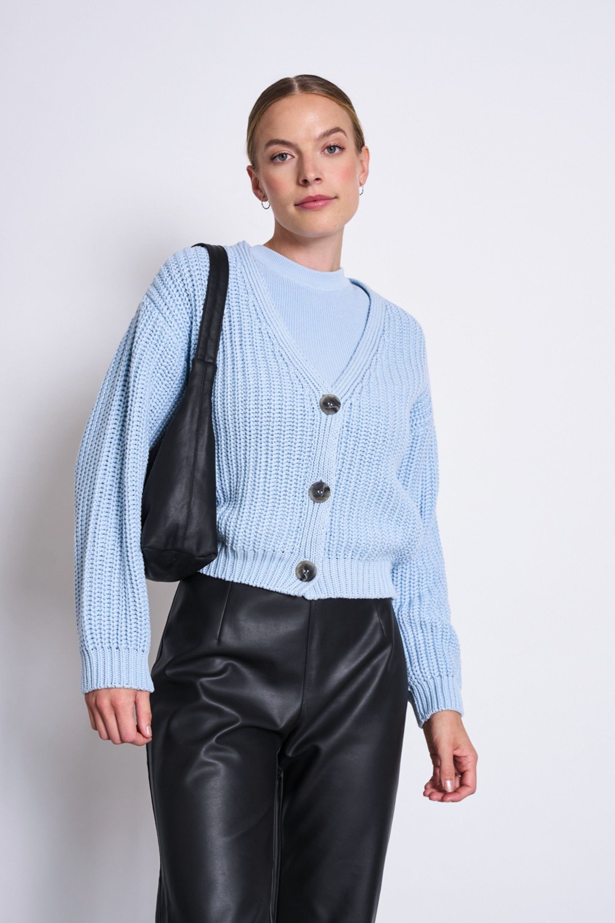 Cropped Cardigan aus schwerem Strick Große Knöpfe VAusschnitt Optik Strick
